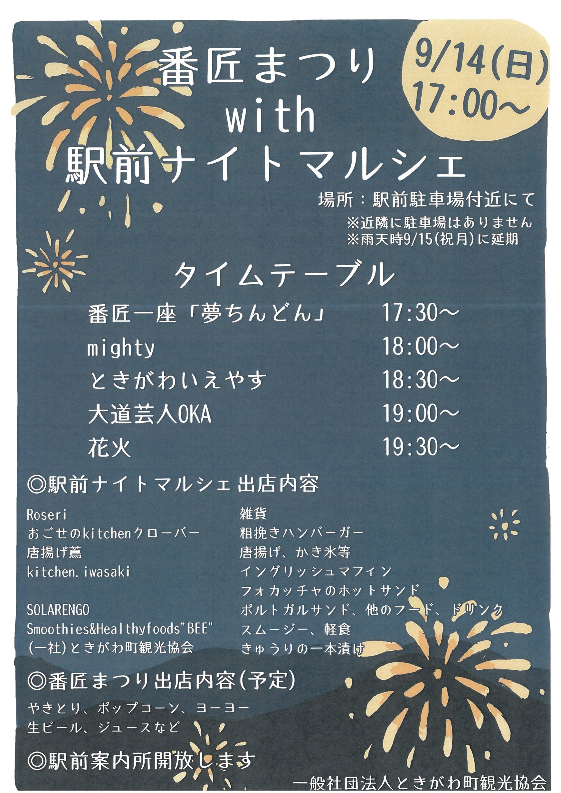 9/14(日)番匠まつり・ナイトマルシェ開催にあたり