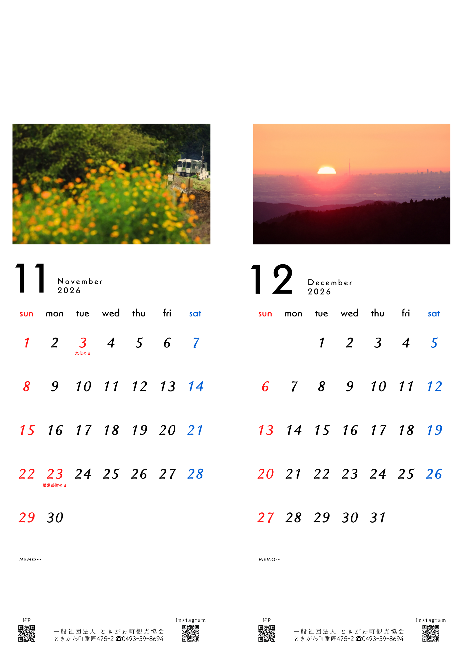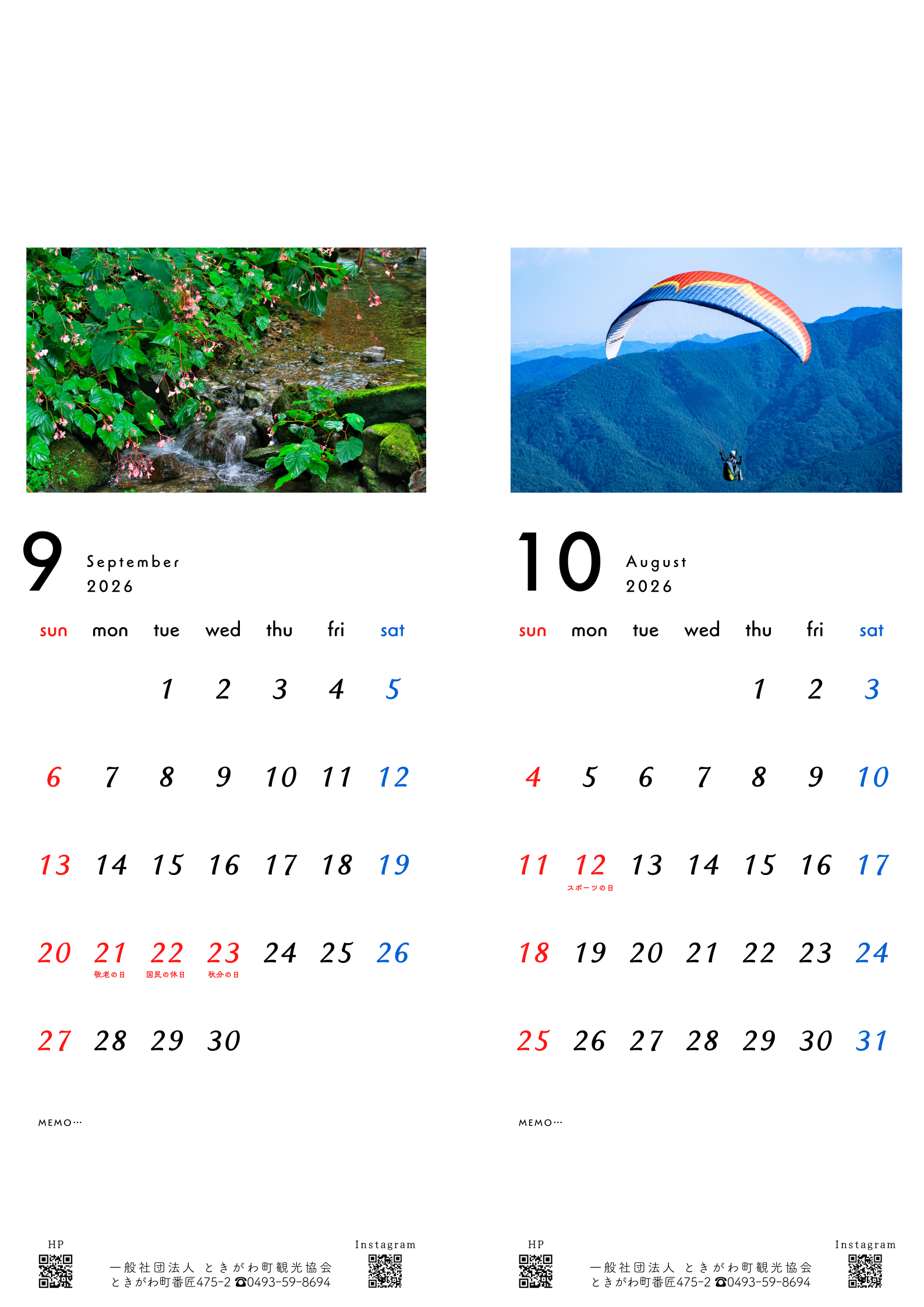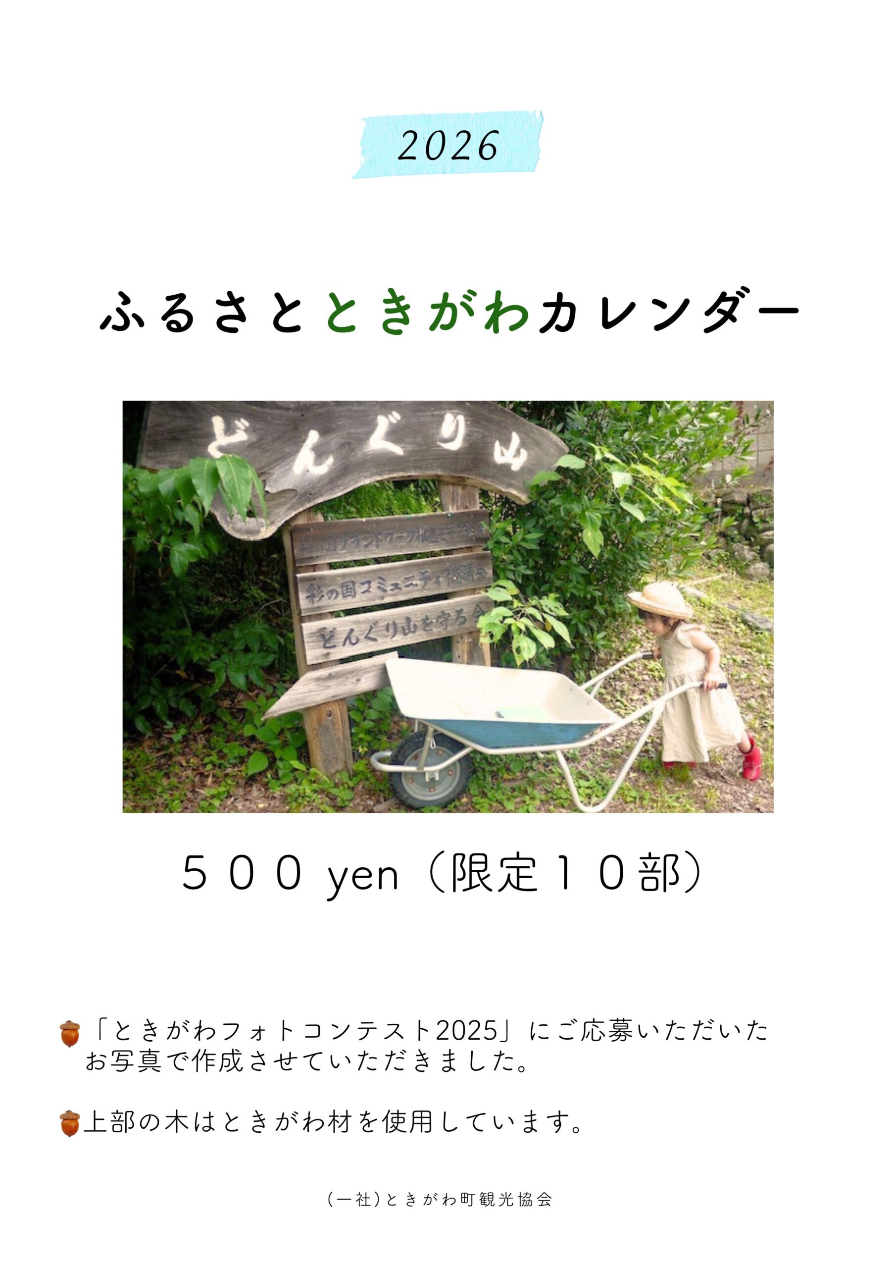 只今発売中の「ふるさとときがわカレンダー2026」。