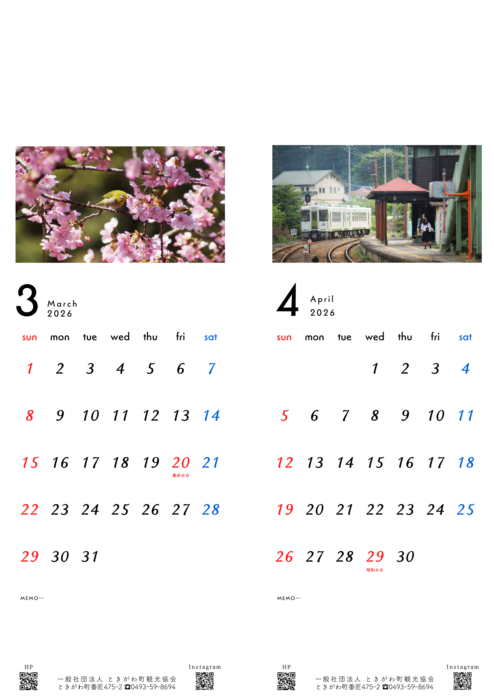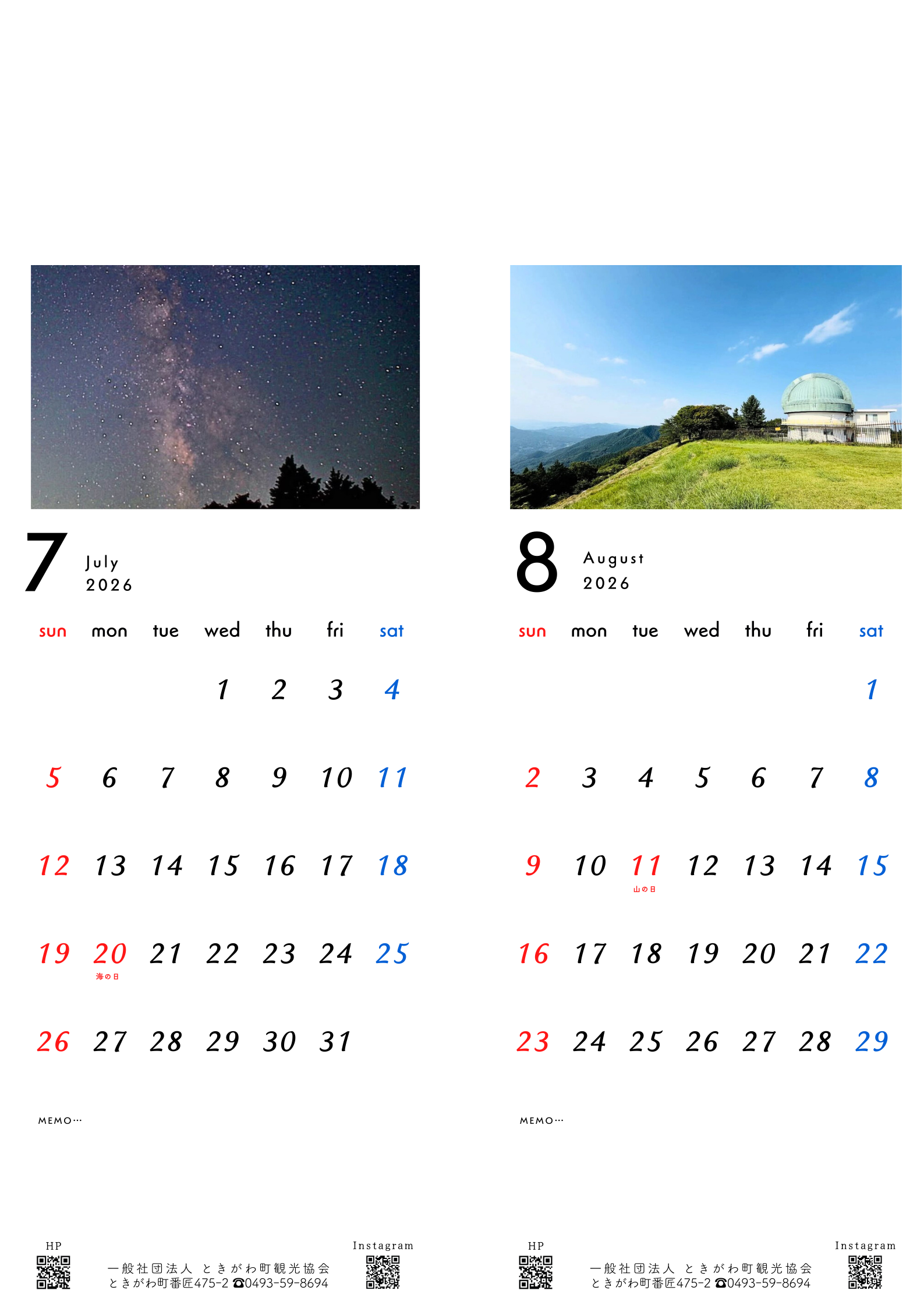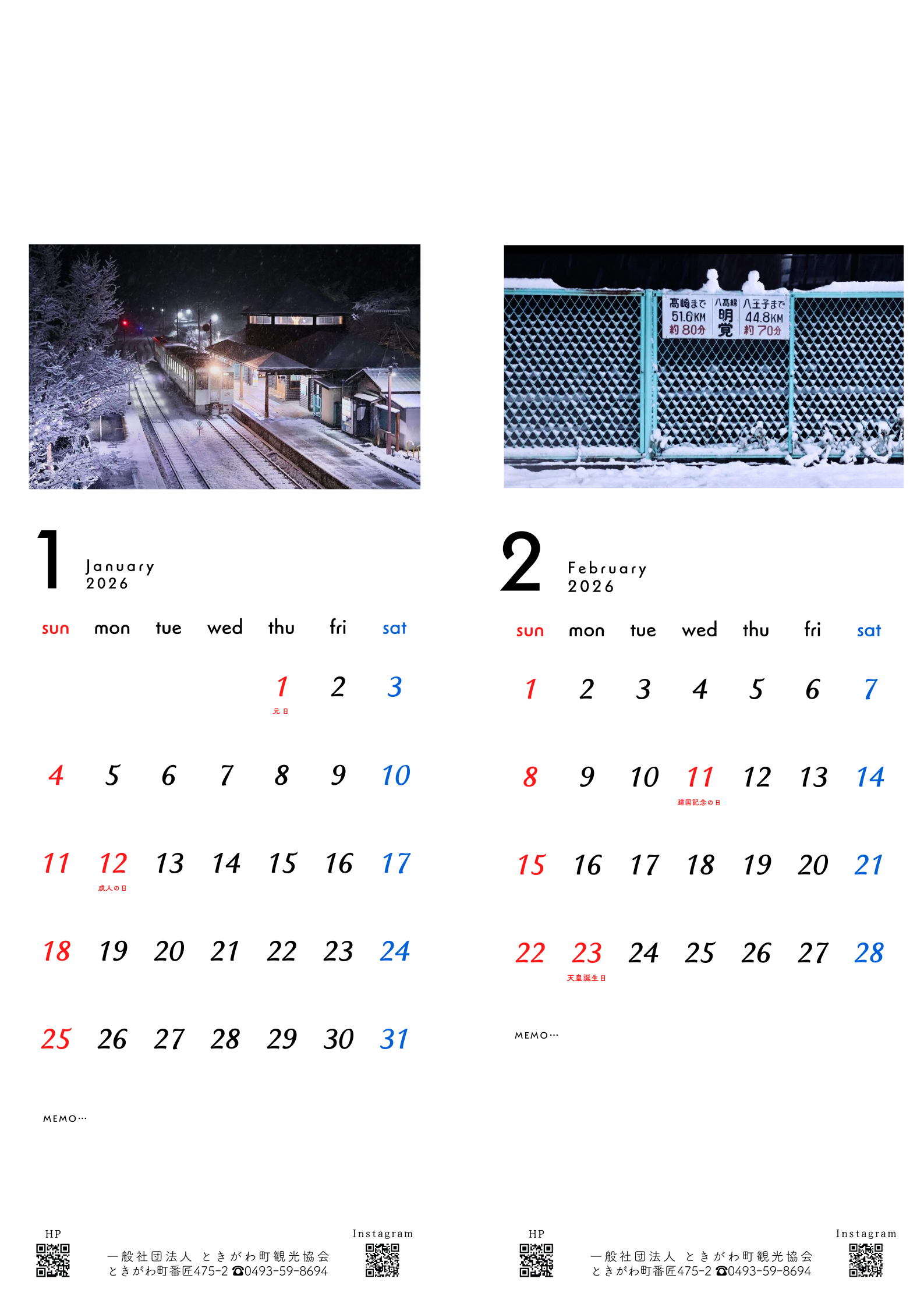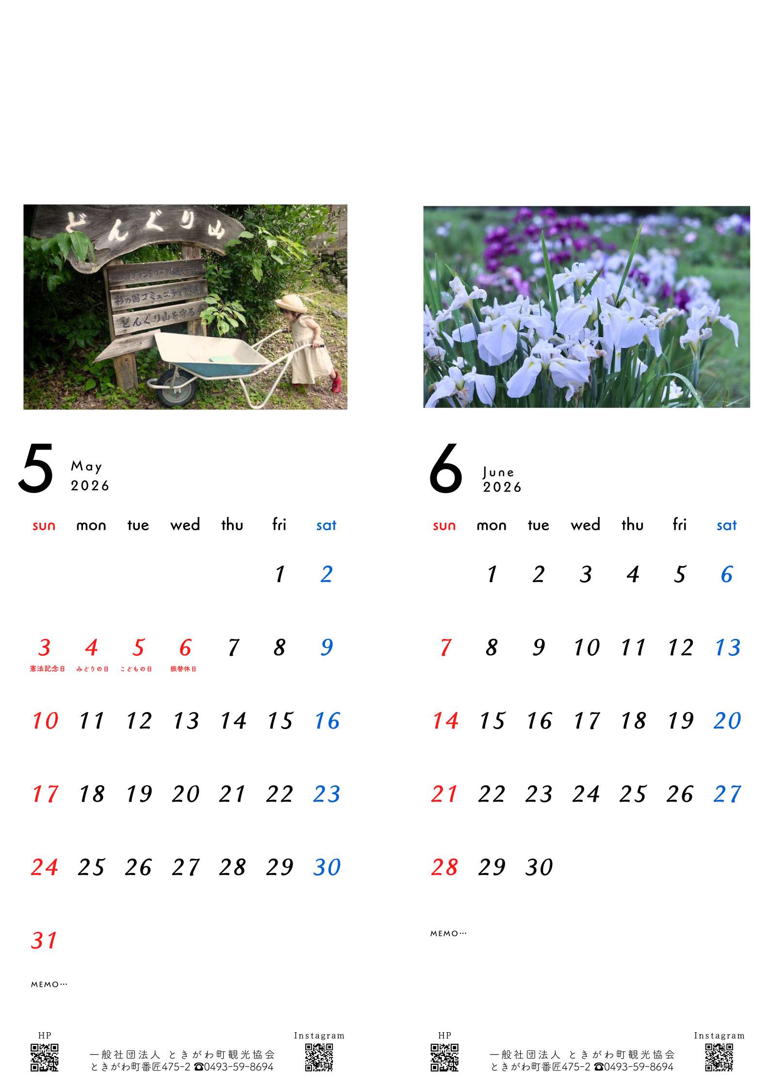 只今発売中の「ふるさとときがわカレンダー2026」。