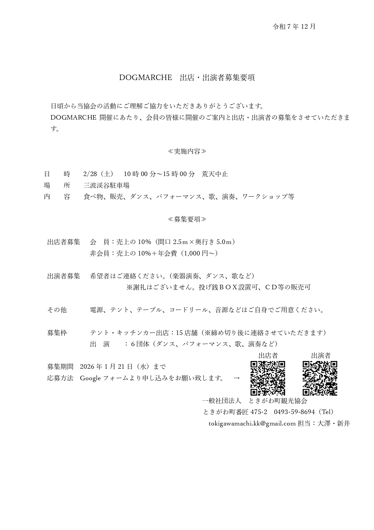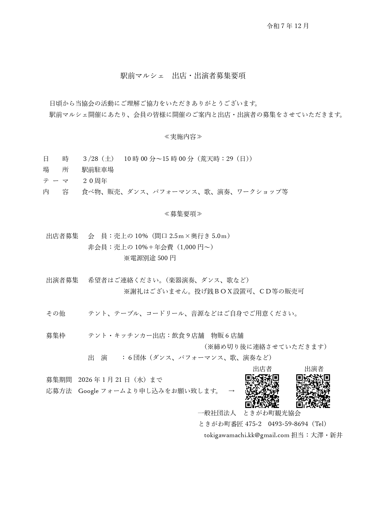 ※なお、出店可否については1/21以降に連絡をさせていただきます。